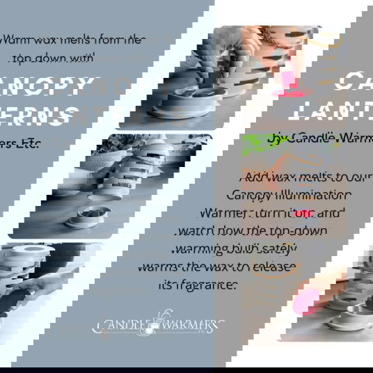 Canopy Illumination Fragrance Warmers quickly and safely warm wax melts from above. A halogen light gives off a soft glow, and ceramic or porcelain finishes provide a pop of color in line with today's home decor trends. Canopy warmers are perfect for adding candlelight ambiance and your favorite home fragrance to any room in the home.